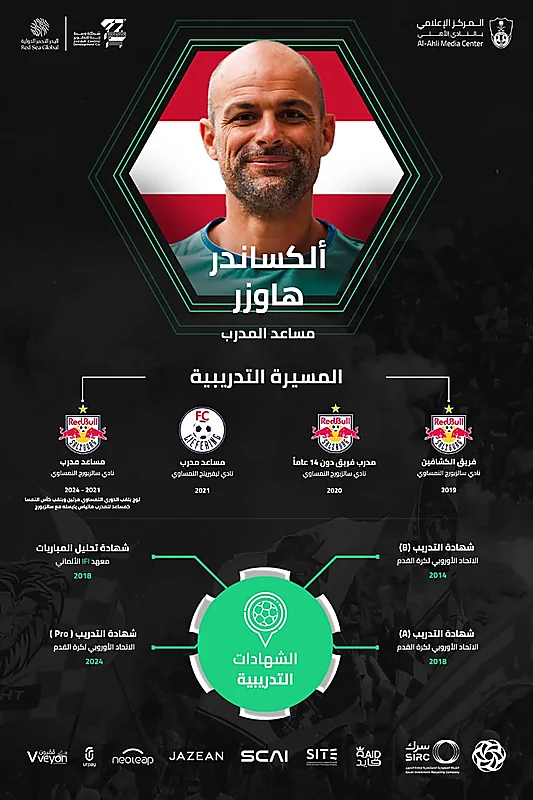 أعلن النادي الأهلي اليوم الجمعة ، عن تعيين النمساوي ألكساندر هاوزر مساعدًا للمدير الفني الألماني ماتياس يايسله بشكل رسمي .