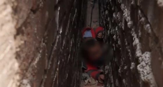 بالفيديو.. رجال الإنقاذ تخلص طفل علق بين بنايتين