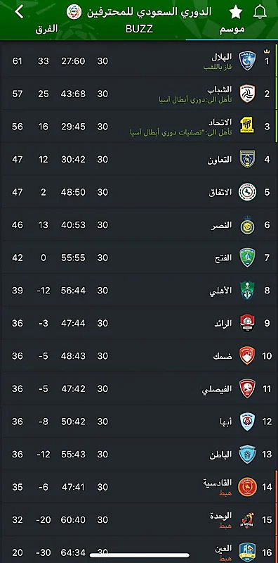 الترتيب النهائي لفرق دوري الأمير محمد بن سلمان للمحترفين بعدما حسم الزعيم اللقب