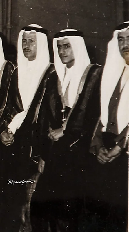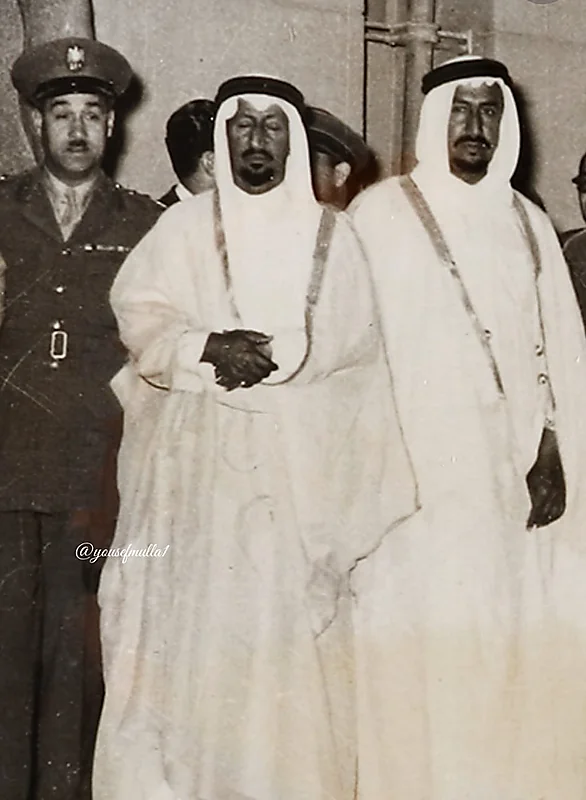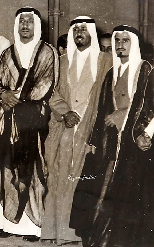 وأظهرت الصورة، الملك سعود رحمه الله ومن يساره الأمير سعود بن عبدالله بن سعود بن فيصل آل سعود والأمير محمد بن سعود الكبير.