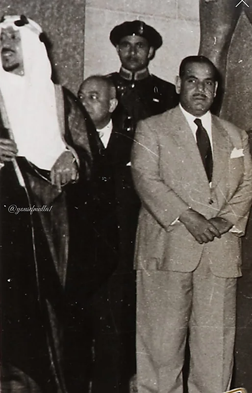 وثقت صورة نادرة عدد من مرافقي الملك عبد العزيز خلال زيارته إلى جمهورية مصر العربية منذ ٧٧ عام.