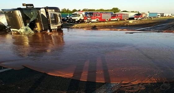تسبب انقلاب " صهريج " يحمل 12 طن من الشيكولاتة السائلة، اليوم " الأربعاء "، على الطريق السريع إيه 2 بين " فوجشنيا وسوبثا " بمنطقة جرابوشافو بولندا.